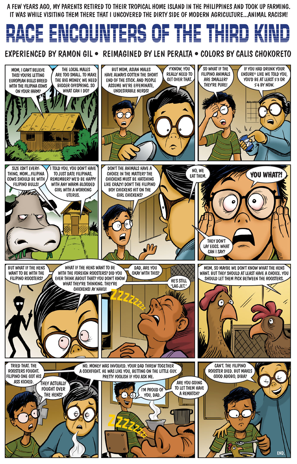 This story was Ramon's contribution to the collection. Art by Len Peralta. ![]()