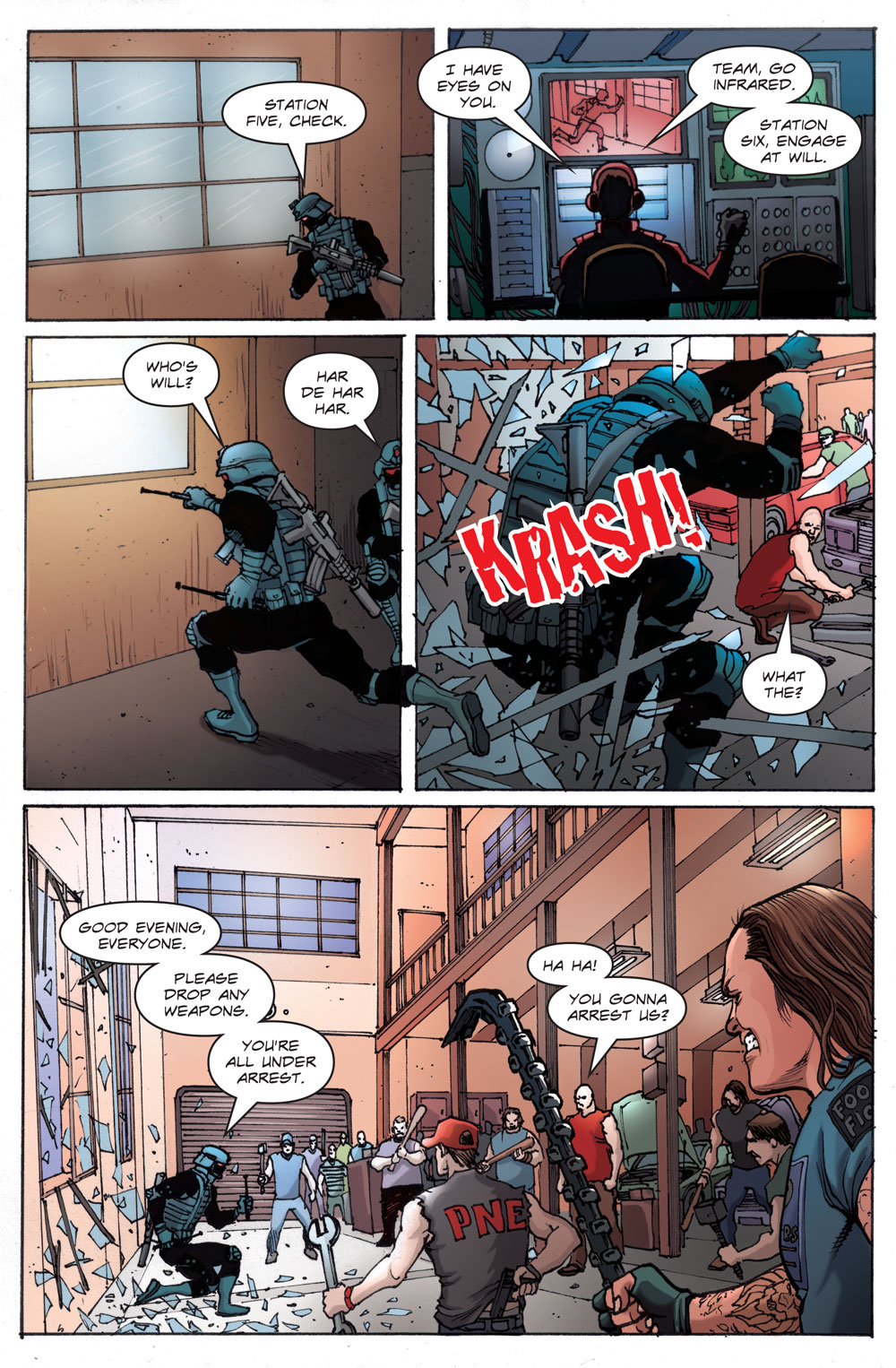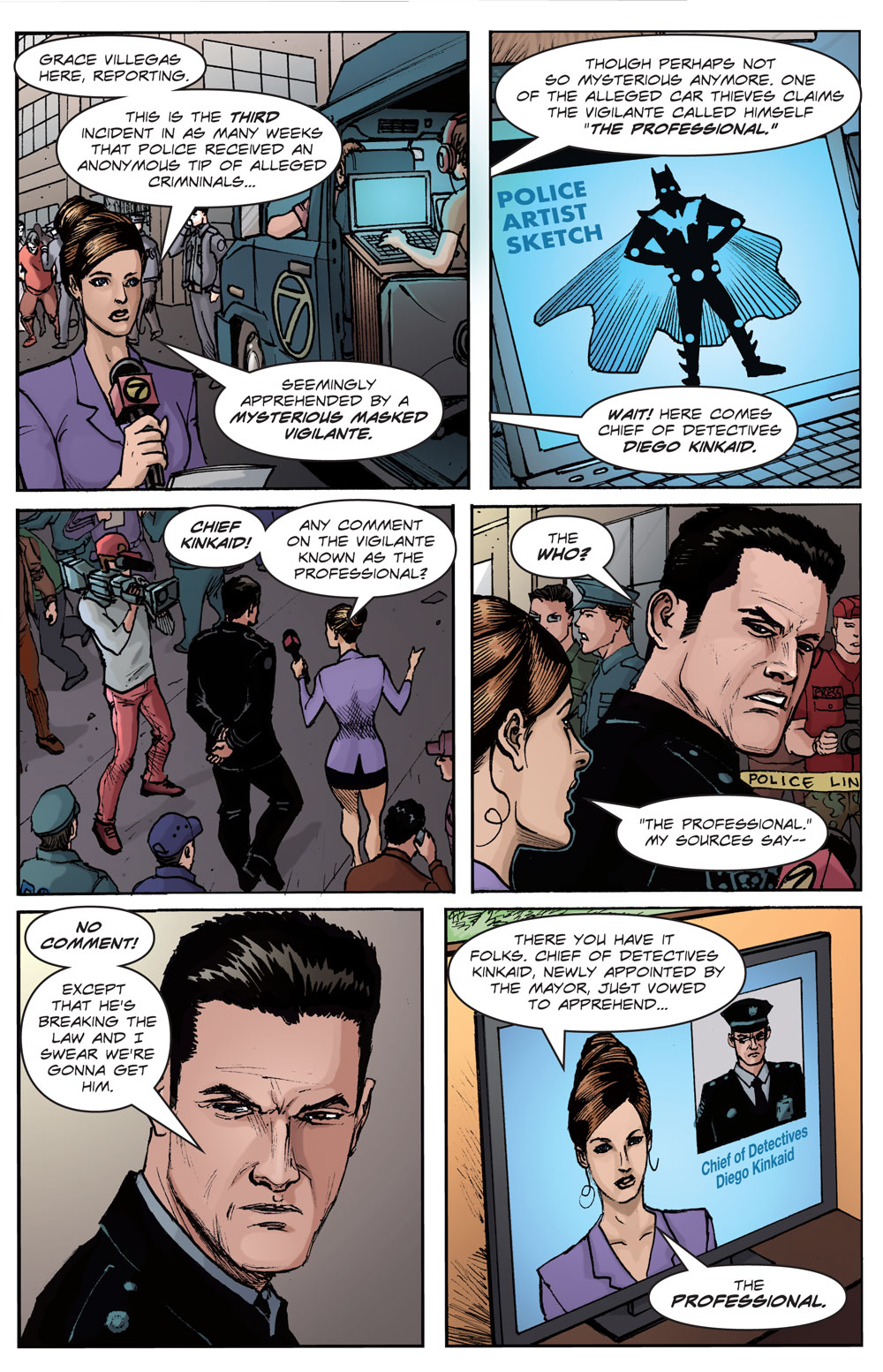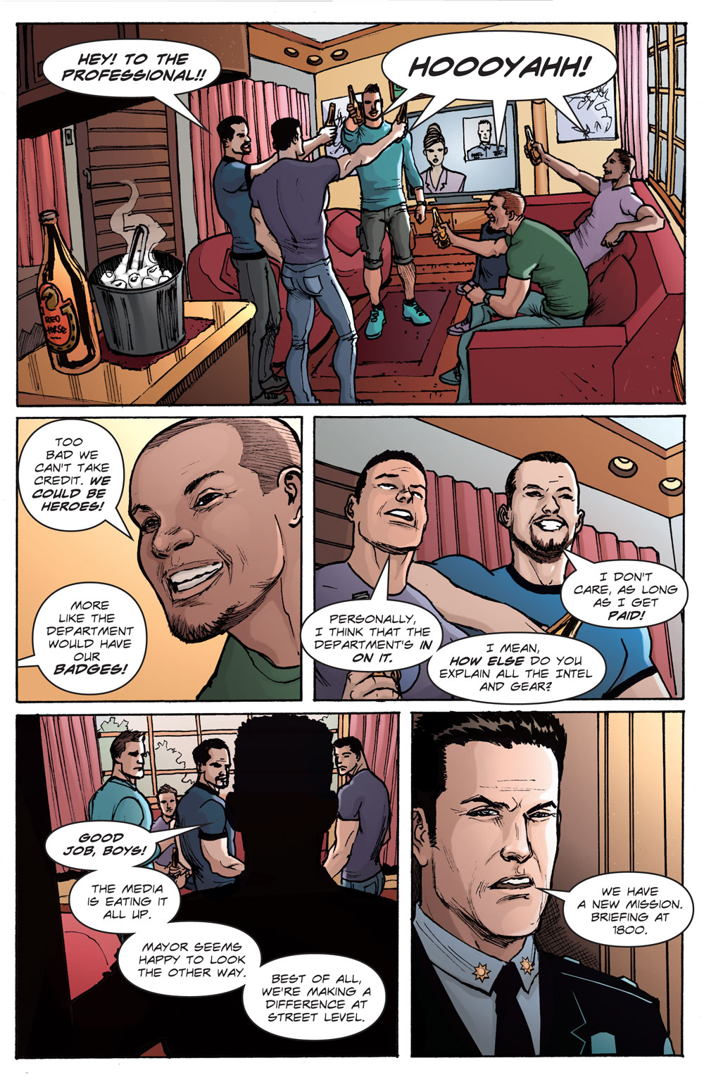 In this story, a team of rogue cops try to become a superhero crimefighter. Art by Lui Antonio. ![]()