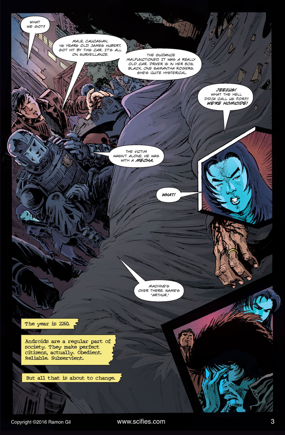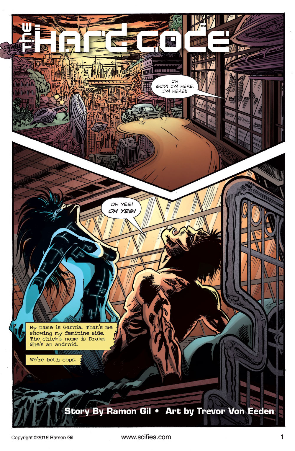 The Hard Code #1 (2015)A detective story about androids, racism and love affairs. Detectives Drake and Garcia need to solve the mystery of androids' disappearing hard codes before civil war breaks out. ![]()