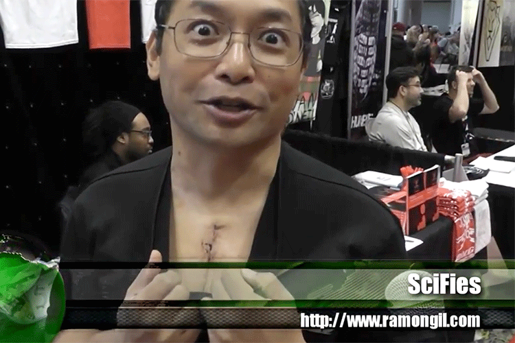 This was during the New York Comic Con right after my heart bypass surgery. Be warned, I show off my scars!